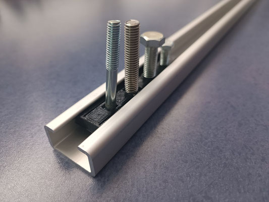 Die Abbildungen zeigen den 3D-gedruckten Prototypen, Bilder des Nutensteins in Edelstahl folgen in Kürze.