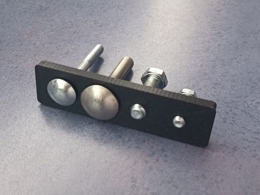 Stabilität ist mir wichtig, deshalb alle Ausführungen Heavy Duty und aus Edelstahl gelasert. Kein Verbiegen wie bei dünnen Stahl- oder Aluminium-Platten oder gar Ausreißen des Gewindes. Sicherheit geht vor. Alle Schrauben und Gewindestifte ebenfalls aus Edelstahl. Lediglich bei der von mir zugekauften Verzurröse kommt kein Edelstahl zum Einsatz.